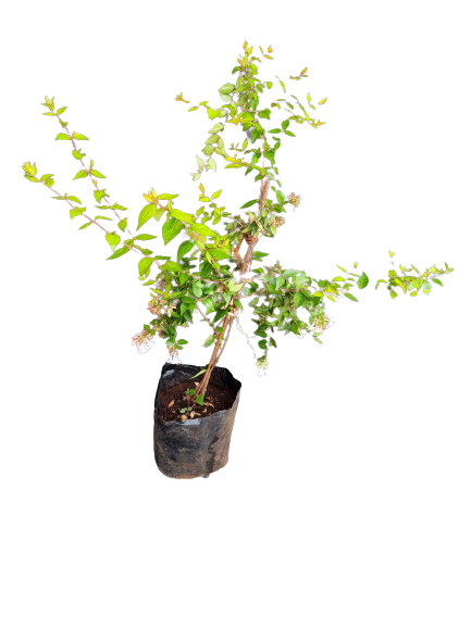 abelia [Gold Jewel] A compact semi-evergreen cultivar to a height of 90cm, with bright gold foliage that darkens to bronze in autumn and winter. Lightly scented pale pink-white flowers are borne in clusters from midsummer to mid autumn.