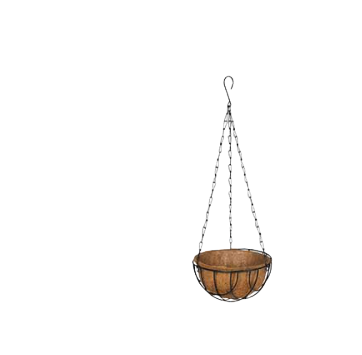 Coir hanging baskets are made from wire steel baskets with a chain and clip for easy hanging. The shaped liner is made from robust coco fiber hair and coated with latex.