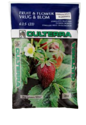 Culterra fruit and flower 6:1:5 (21) is a fertilizer that is well suited for the stimulation of growth on fruit and flower bearing plants.