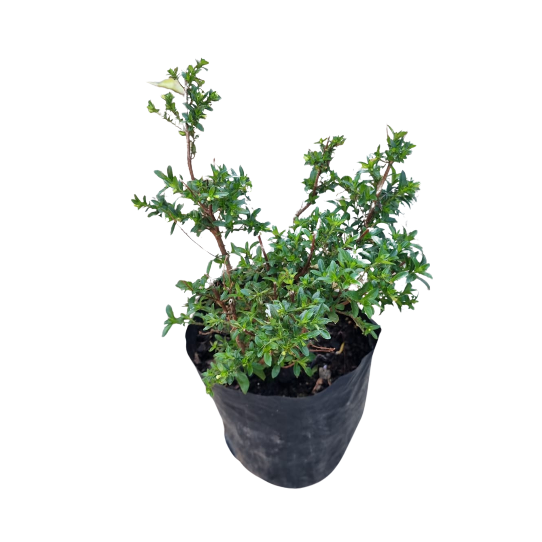 A small, round shrub with dense foliage. White flowers from spring to autumn. Evergreen.Mature plant size may vary due to growing conditions and climate,