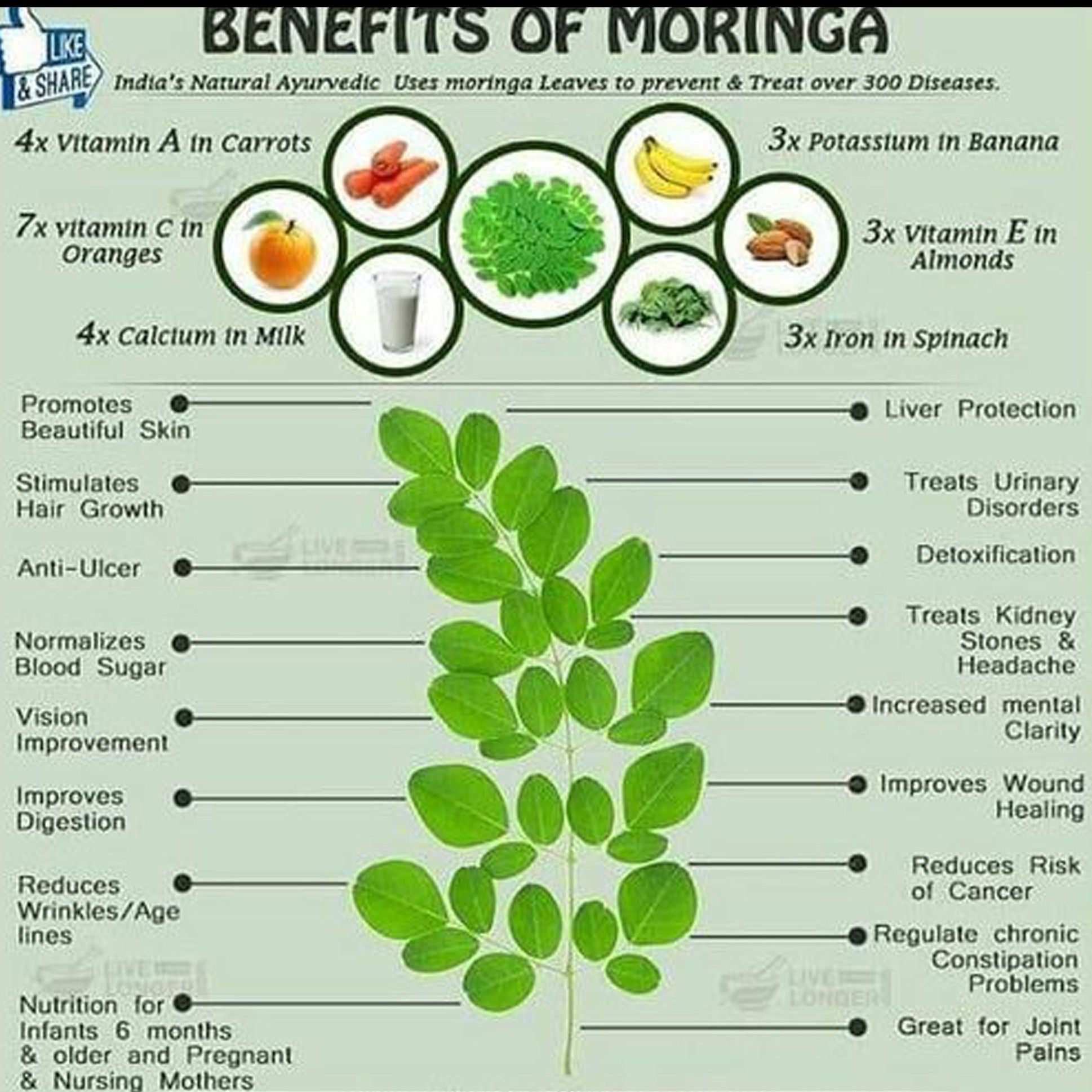 According to African, Indian and other Indigenous cultures, Moringa has been used 5to treat over 300 diseases, including the following: Diabetes, Detoxification, Blood Pressure, Cancer, Brochities, Eye and Ear Infections, Worms, Anemia, H.I.V Aids, Prostate Issues and Obesity.