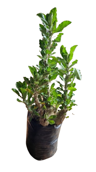Pachypodium saundersii is a beautiful and unique plant species, known for its stunning, compact growth and vibrant green foliage. This 10L variety will make a statement in any garden or indoor space, adding a touch of natural beauty and an interesting conversation piece to your home.