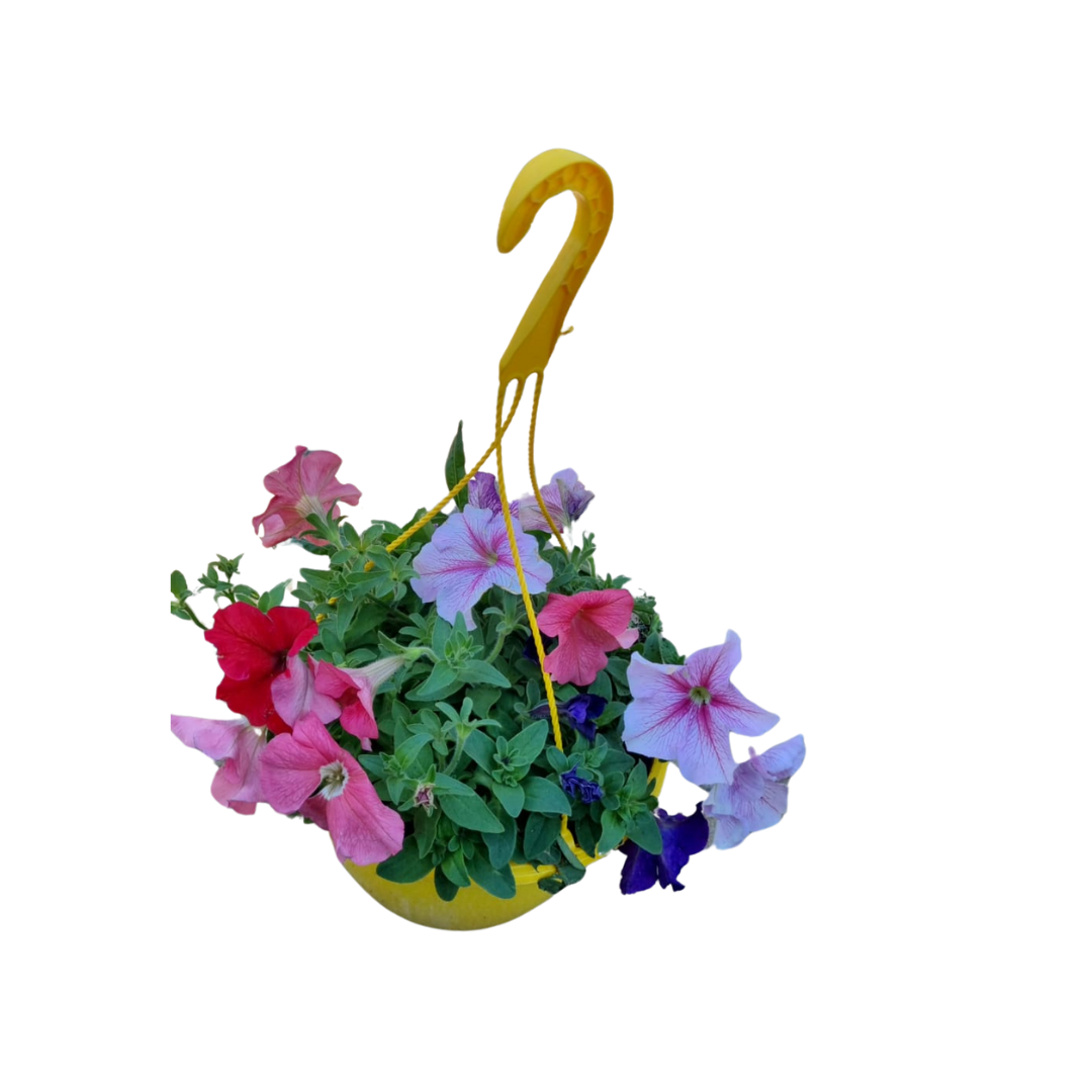 Upgrade your garden with our Petunia Hanging Baskets! Expertly crafted with large, vibrant petunias, these hanging baskets will add a splash of color and beauty to any outdoor space. With their sturdy construction and eye-catching design, they are the perfect choice for adding a touch of nature to your home.