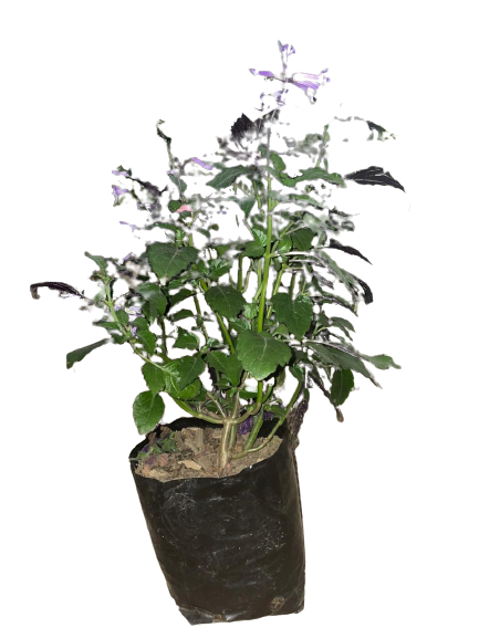 Mona Lavender' is a quick-growing, herbaceous, perennial shrub reaching up to 0.75 m in height, forming a lovely, rounded, dense bush. It has dark green, glossy leaves with intensely purple undersides and sprays of lavender flowers dashed with purple markings.