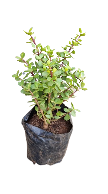 Portulacaria afra is a small-leaved succulent plant found in South Africa. These succulents commonly have a reddish stem and leaves that are green, but also a variegated cultivar is often seen in cultivation. They are simple to care for and make easy houseplants for a sunny location.