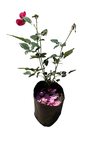 Deep pink. Mild, wild rose fragrance. Semi-double (9-16 petals) bloom form. Blooms in flushes throughout the season.
