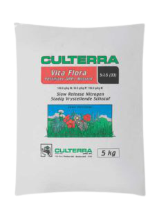 Culterra vita flora 5:1:5 (33) is an excellent slow release nitrogen fertilizer for general purposes such as feeding shrubs and trees in the garden and nursery. The fertilizer produces beautiful results on lawns and lasts for up to 3 months. Culterra vita flora 5:1:5 (33) SRN is made in a chlorine-free form with added trace elements. Chlorine is toxic to plants and many growers insist on using chlorine fertilizer with added trace elements. Available in 2, 5, 10, 20 and 50kg bags.
